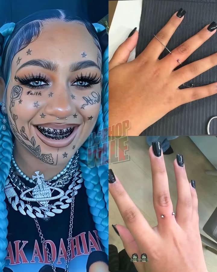 The preteen stunned followers after sharing close-up photos of her hand adorned with multiple jewels, including two dermal piercings embedded into her fingers.