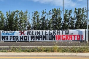 A banner has appeared in Bergamo with a message that reads: “No. 11 reintegrated but for us, you remain ungrateful.”