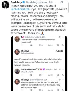A former member of the defunct PSquare, Paul Okoye, popularly known as Rudeboy, has vowed to go after a lady on X, @chubbiediva, who accused him of raping his house help.