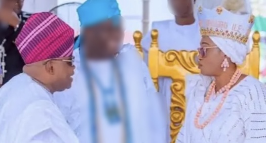 The moment, which was captured on now-viral video, showed as the governor mounted the podium to pay tribute to the monarch and to congratulate the First Lady on her newly bestowed chieftaincy title, Yeye Asiwaju Gbogbo Ile Oodua.